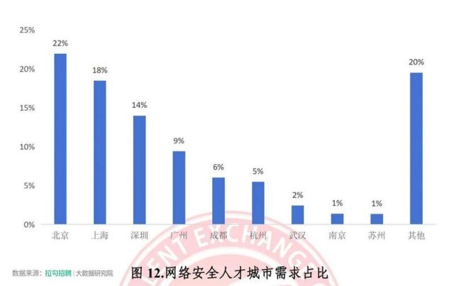 根據(jù)國(guó)家智慧教育公共服務(wù)平臺(tái)數(shù)據(jù),2023年網(wǎng)絡(luò)安全相關(guān)本科專業(yè)(信息安全、網(wǎng)絡(luò)空間安全、網(wǎng)絡(luò)安全與執(zhí)法)畢業(yè)生規(guī)模約為 1.45 萬人??傮w上,網(wǎng)絡(luò)安全產(chǎn)業(yè)人才供需關(guān)系為供不應(yīng)求。《報(bào)告》稱,根據(jù)拉勾招聘平臺(tái)數(shù)據(jù)顯示,最新網(wǎng)絡(luò)安全人才需求排名前六的城市分別是北京、上海、深圳、廣州、成都和杭州,占據(jù)市場(chǎng)總需求的75%左右。