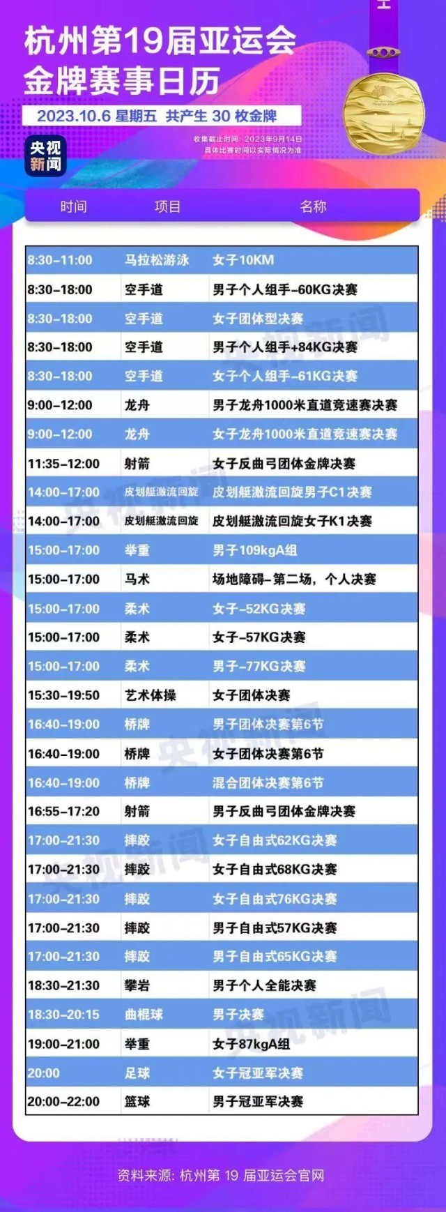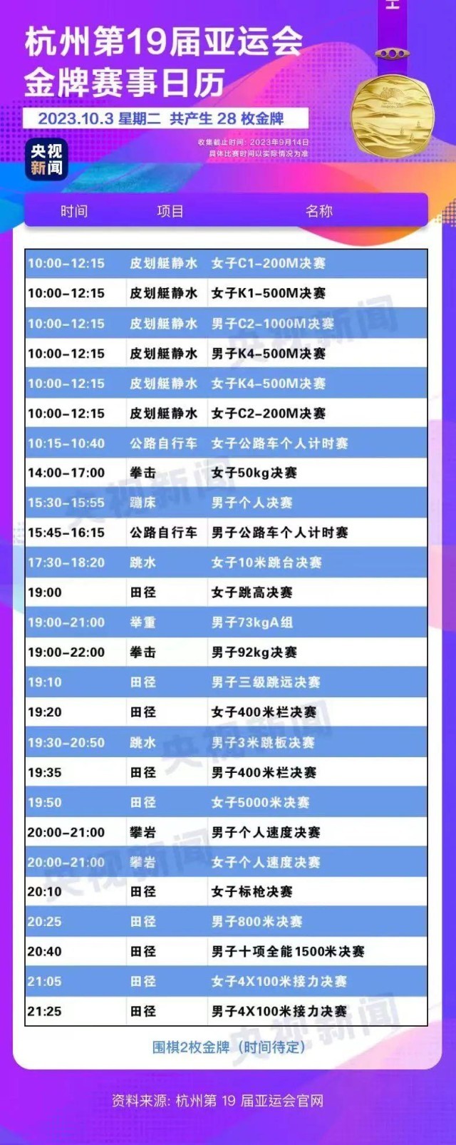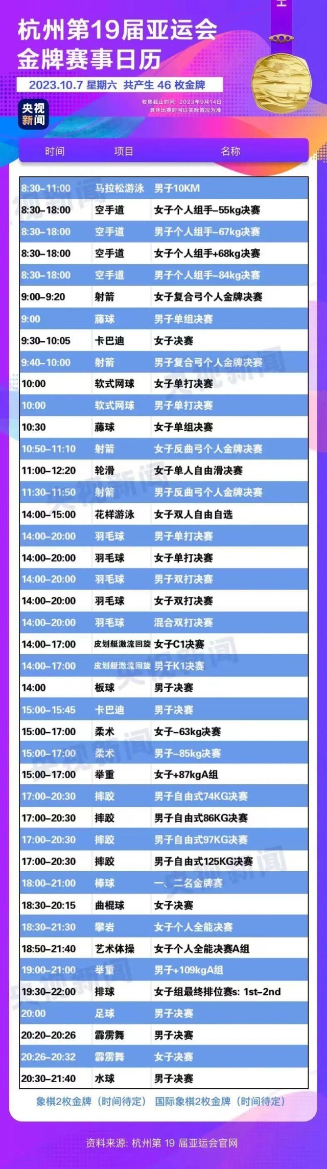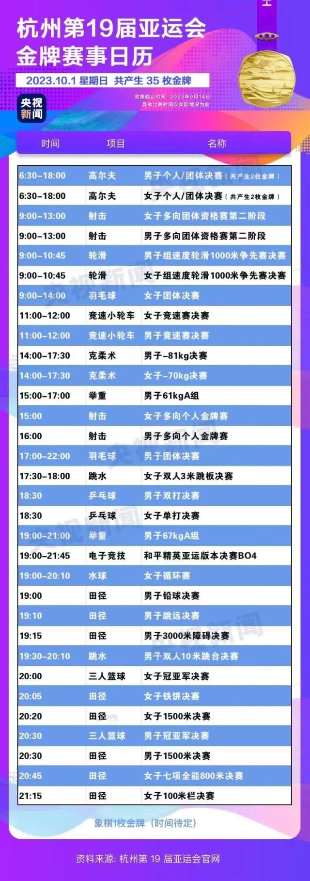 最后,小編還為你準備了一份杭州亞運會金牌賽事日歷,日歷里包含所有481枚金牌產生的時間。滑動手指,看看你關注的比賽在哪天舉行。