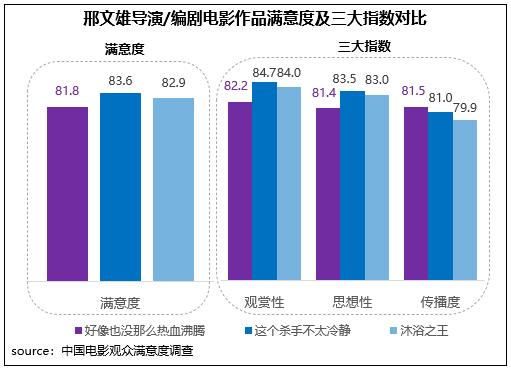 該片由邢文雄擔(dān)任監(jiān)制、編劇,與其導(dǎo)演/編劇的另外兩部電影作品(2020年賀歲檔上映的《沐浴之王》、2022年春節(jié)檔上映的《這個殺手不太冷靜》)相比,《好像也沒那么熱血沸騰》的觀賞性、思想性得分略低,但傳播度為三部影片中最高。