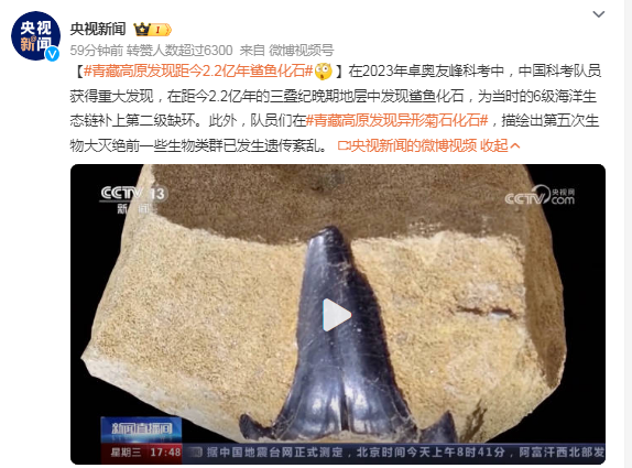 在2023年卓奧友峰科考中,中國科考隊員獲得重大發(fā)現(xiàn),在距今2.2億年的三疊紀晚期地層中發(fā)現(xiàn)鯊魚化石,為當時的6級海洋生態(tài)鏈補上第二級缺環(huán)。此外,隊員們在#青藏高原發(fā)現(xiàn)異形菊石化石#,描繪出第五次生物大滅絕前一些生物類群已發(fā)生遺傳紊亂。