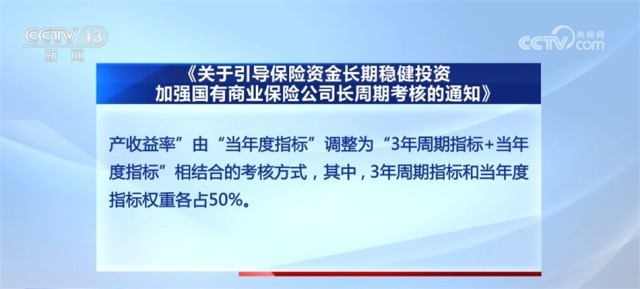 《通知》明確,為引導(dǎo)國有商業(yè)保險公司長期穩(wěn)健經(jīng)營,更好發(fā)揮中長期資金的市場穩(wěn)定器和經(jīng)濟(jì)發(fā)展助推器作用,加強對國有商業(yè)保險公司的長周期考核,根據(jù)《財政部關(guān)于印發(fā)<商業(yè)保險公司績效評價辦法>的通知》,將經(jīng)營效益指標(biāo)的“凈資產(chǎn)收益率”由“當(dāng)年度指標(biāo)”調(diào)整為“3年周期指標(biāo)+當(dāng)年度指標(biāo)”相結(jié)合的考核方式,其中,3年周期指標(biāo)和當(dāng)年度指標(biāo)權(quán)重各占50%。