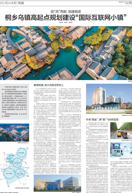 11月1日,《浙江日報》整版刊發(fā)《迎“風(fēng)”而起 加速前進桐鄉(xiāng)烏鎮(zhèn)高起點規(guī)劃建設(shè)“國際互聯(lián)網(wǎng)小鎮(zhèn)”》,全文如下: