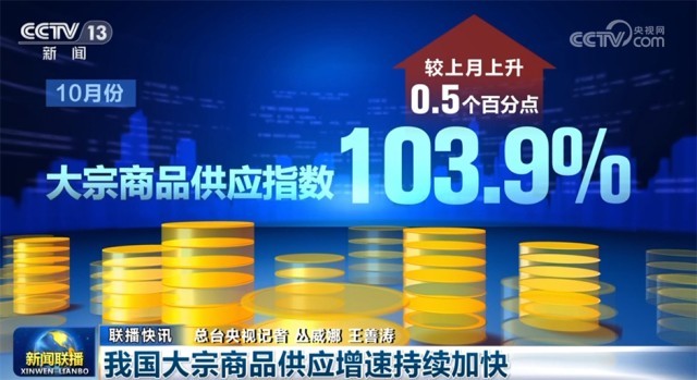 中國物流與采購聯(lián)合會今天(11月5日)公布,10月份中國大宗商品指數(shù)為102.8%。其中,大宗商品供應指數(shù)為103.9%,較上月上升0.5個百分點,指數(shù)三連升至近期高點。各主要商品中,鐵礦石、煤炭、有色金屬和汽車供應量繼續(xù)增長,并且增速加快。
