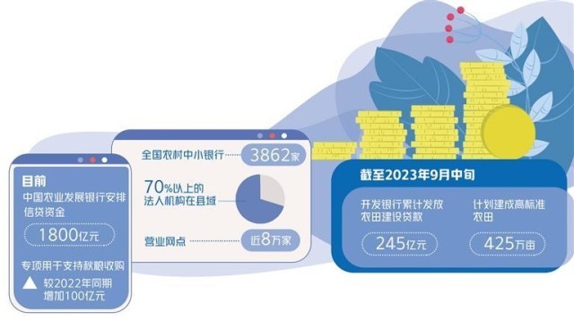 “下一步,開(kāi)發(fā)銀行將持續(xù)發(fā)揮開(kāi)發(fā)性金融功能作用,聚焦農(nóng)業(yè)基礎(chǔ)設(shè)施精準(zhǔn)補(bǔ)短板、強(qiáng)弱項(xiàng),用好農(nóng)田建設(shè)專項(xiàng)貸款,優(yōu)化信貸資源配置,堅(jiān)持讓利于農(nóng),為高標(biāo)準(zhǔn)農(nóng)田建設(shè)提供更有力的金融支持?!痹撠?fù)責(zé)人表示,截至2023年9月中旬,開(kāi)發(fā)銀行累計(jì)發(fā)放農(nóng)田建設(shè)貸款245億元,計(jì)劃建成高標(biāo)準(zhǔn)農(nóng)田425萬(wàn)畝,其中2023年發(fā)放53億元,重點(diǎn)支持了吉林、江蘇、四川、廣西、寧夏等省市的高標(biāo)準(zhǔn)農(nóng)田建設(shè)和農(nóng)田基礎(chǔ)設(shè)施改造提升工程。