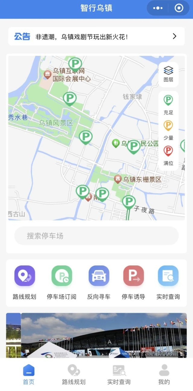 由點(diǎn)及面,烏鎮(zhèn)整合景區(qū)及鎮(zhèn)區(qū)7000余個(gè)停車位信息及公交、公共自行車、公共電單車等公共交通資源,定制了一款“智行烏鎮(zhèn)”小程序,已在微信及支付寶端上線試用,能“反向?qū)ぼ嚒薄ⅰ巴\囉嗛啞钡?,為暢行烏?zhèn)“最后100米”的困擾找到了最優(yōu)解。