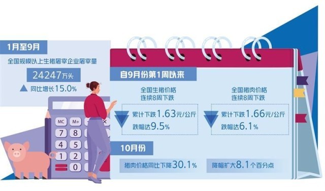 作為我國(guó)居民肉籃子的主要部分,豬肉價(jià)格一直備受關(guān)注。農(nóng)業(yè)農(nóng)村部監(jiān)測(cè)數(shù)據(jù)顯示,11月7日,全國(guó)農(nóng)產(chǎn)品批發(fā)市場(chǎng)豬肉平均價(jià)格為20.49元/公斤,比9月7日的22.35元/公斤下跌8.3%?!柏i肉供給充裕,價(jià)格持續(xù)走低?!敝袊?guó)農(nóng)業(yè)科學(xué)院北京畜牧獸醫(yī)研究所研究員朱增勇對(duì)記者說。