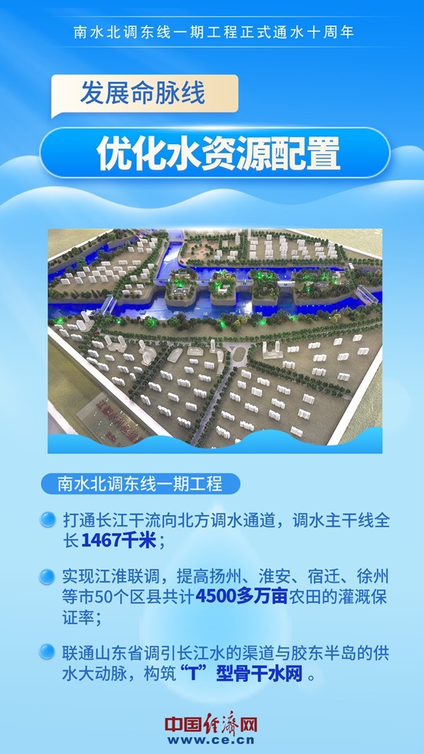 10年來(lái),長(zhǎng)江水、淮河水、黃河水等水系構(gòu)筑起的縱橫水網(wǎng),由一渠清水串連,鋪陳在東方大地上,連接起江蘇、安徽、山東3省的23個(gè)地級(jí)市和其轄內(nèi)的101個(gè)縣(市、區(qū))用水需求,惠及沿線超6800萬(wàn)人。
