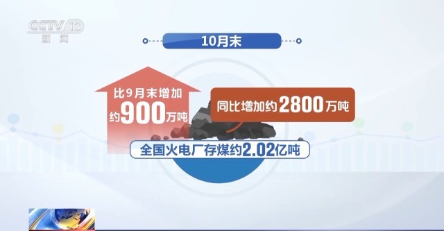 中國煤炭工業(yè)協(xié)會數(shù)據(jù)顯示:10月末,全國火電廠存煤約2.02億噸,比9月末增加約900萬噸、同比增加約2800萬噸,存煤可用約34天,存煤創(chuàng)歷史新高。