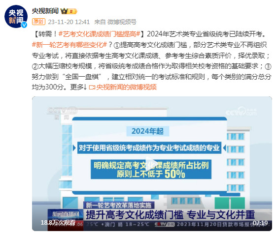 新一輪藝考有哪些變化?文化課成績門檻提高