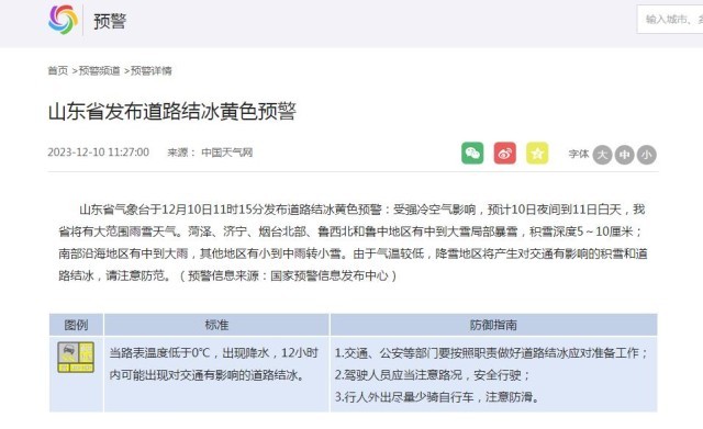 山東省發(fā)布道路結(jié)冰黃色預(yù)警