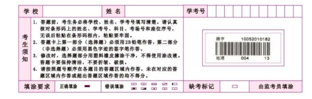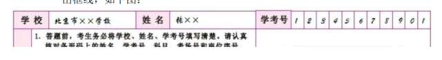 3.答題前要仔細閱讀答題卡上的“考生須知”。務必用黑色字跡的簽字筆將答題卡左上角的學校名稱、姓名、學考號填寫清楚,字跡不能超出框線,如下圖: