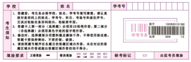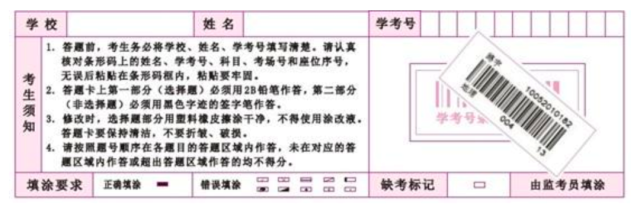 考生不得自行填涂“缺考標記”欄,如下圖所示: