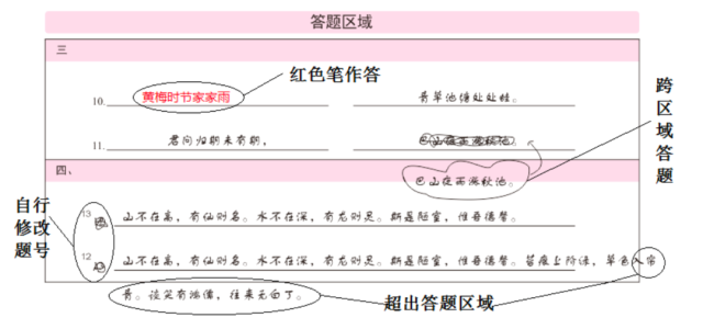 4) 在錯誤的題號區(qū)域答題,錯誤。