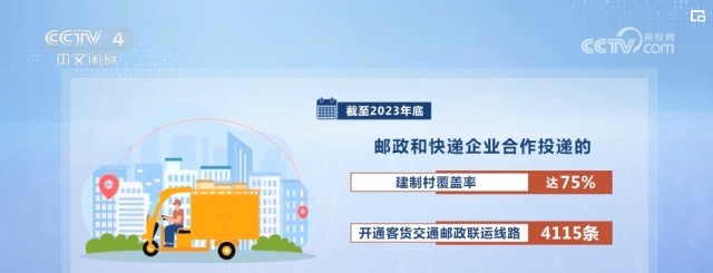 數(shù)據(jù)顯示,截至2023年底,中國(guó)郵政建成1061個(gè)縣、6010個(gè)鄉(xiāng)鎮(zhèn)的郵政處理中心和40萬(wàn)個(gè)郵政及郵樂(lè)購(gòu)村級(jí)站點(diǎn),郵政和快遞企業(yè)合作投遞的建制村覆蓋率達(dá)75%,開(kāi)通客貨交通郵政聯(lián)運(yùn)線(xiàn)路4115條。