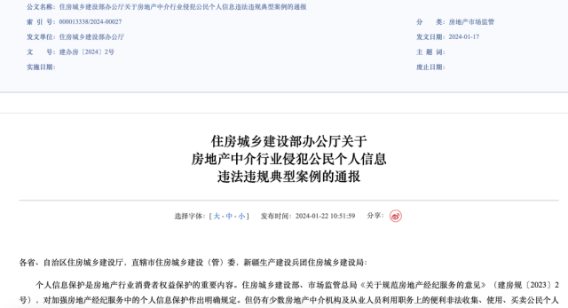 1月22日上午,住建部官網(wǎng)通報(bào)了5起房地產(chǎn)中介行業(yè)侵犯公民個人信息違法違規(guī)典型案例: