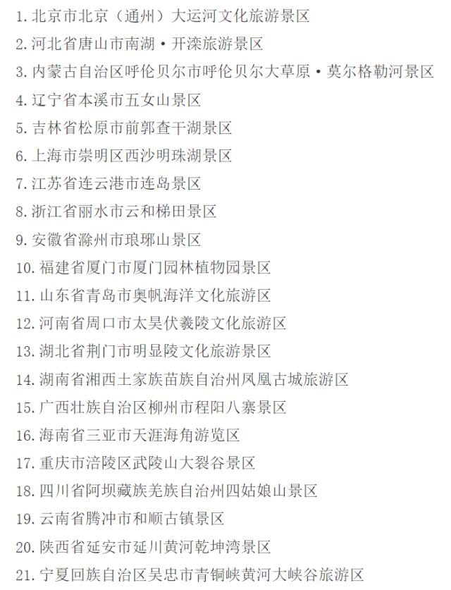 國(guó)家5A級(jí)旅游景區(qū)新增21家