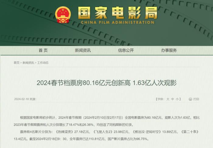 春節(jié)檔數據 圖片來源:國家電影局官網