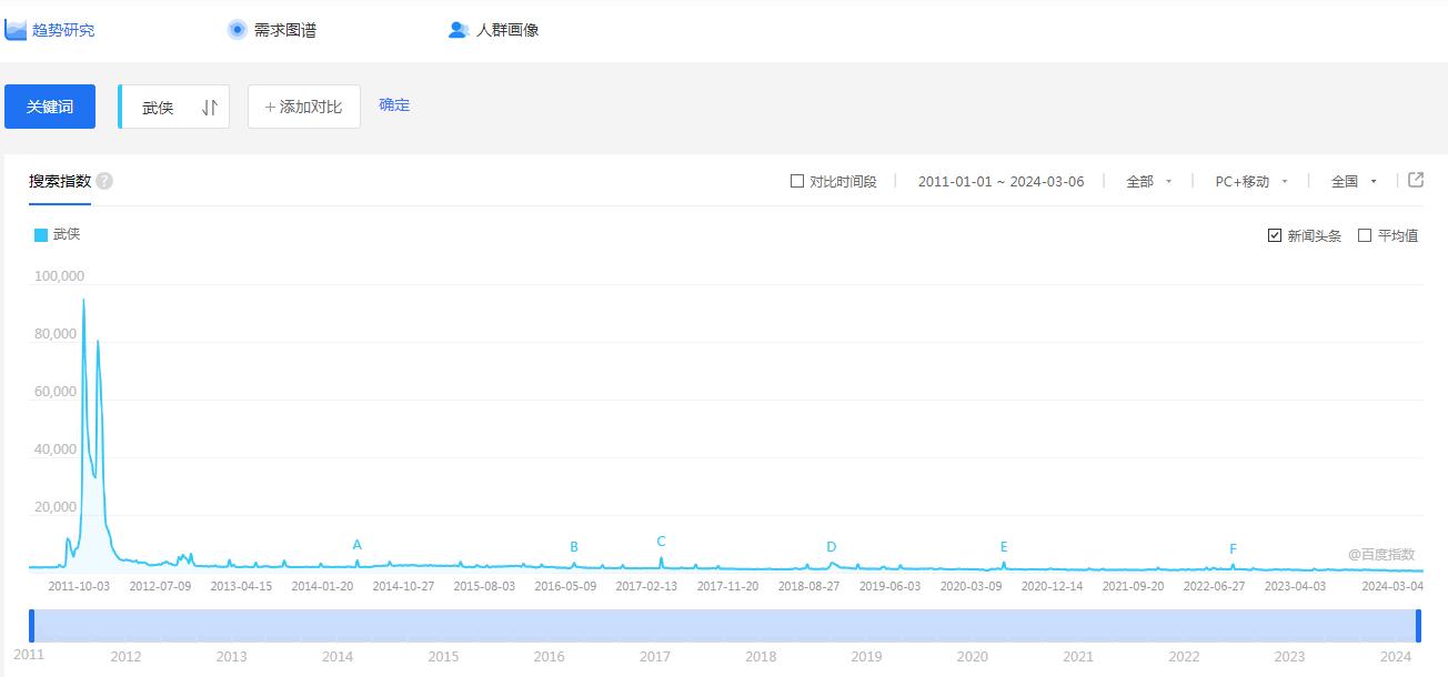 “武俠”百度指數(shù)。網(wǎng)頁(yè)截圖