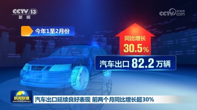 央視網消息(新聞聯(lián)播):中國汽車工業(yè)協(xié)會公布的最新數(shù)據顯示,今年以來,我國汽車出口延續(xù)良好表現(xiàn),今年1至2月份,汽車出口82.2萬輛,同比增長30.5%。其中,新能源汽車出口18.2萬輛,同比增長7.5%。不僅是新能源汽車,今年1至2月份,傳統(tǒng)燃料汽車出口64萬輛,同比增長39%。中國汽車工業(yè)協(xié)會表示,從去年至今,中國汽車出口持續(xù)呈現(xiàn)強勁增長勢頭,體現(xiàn)出中國汽車產業(yè)在技術創(chuàng)新、成本控制、市場布局等方面,逐漸在國際市場上展現(xiàn)出強大的競爭力。
