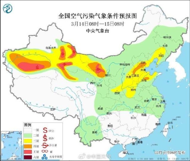 據(jù)中央氣象臺預(yù)報,14日至17日,受冷空氣大風(fēng)影響,西北地區(qū)大部、華北等地自西向東有一次沙塵天氣過程。這將是今春首場沙塵天氣,也是今年來第二輪沙塵過程,上一次還是春節(jié)假期結(jié)束后的寒潮所帶來的強沙塵暴過程(2月17日-2月20日)。