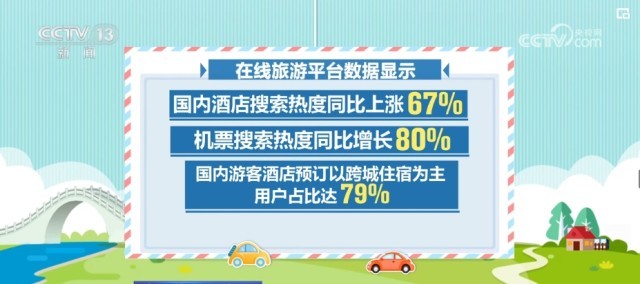 在線旅游平臺數(shù)據(jù)顯示,對清明節(jié)期間的國內(nèi)酒店搜索熱度同比上漲67%,機票搜索熱度同比增長80%,國內(nèi)游客酒店預訂以跨城住宿為主,用戶占比達79%。國內(nèi)旅游預訂較熱門的目的地有上海、北京、杭州等。