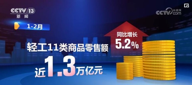 輕工消費(fèi)品市場(chǎng)活力逐步增強(qiáng)。前兩個(gè)月,輕工11類商品零售額近1.3萬(wàn)億元,同比增長(zhǎng)5.2%。輕工全行業(yè)出口額增長(zhǎng)17.4%。