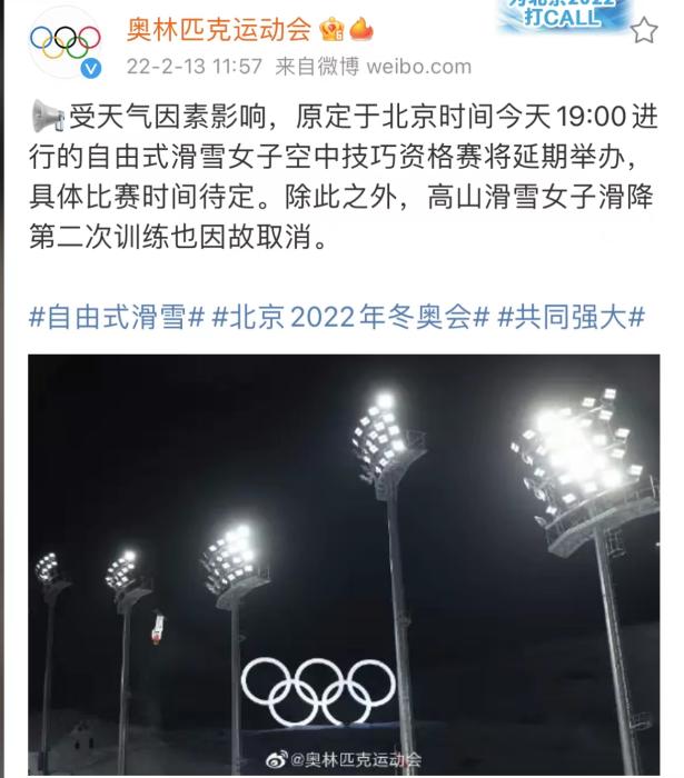 中新網(wǎng)張家口2月13日電(記者王禹 陳林)根據(jù)國際奧委會(huì)官方消息,受天氣因素影響,原定于北京時(shí)間今天19:00進(jìn)行的自由式滑雪女子空中技巧資格賽將延期舉辦,具體比賽時(shí)間待定。中國選手徐夢桃孔凡鈺邵琪將參與該項(xiàng)目的角逐。除此之外,高山滑雪女子滑降第二次訓(xùn)練也因故取消。在此之前,中國選手谷愛凌參加的自由式滑雪女子坡面障礙技巧資格賽也因天氣原因推遲。