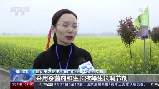 監(jiān)利市農(nóng)業(yè)技術(shù)推廣中心技術(shù)員 徐文靜:采用殺菌劑和生長(zhǎng)液等生長(zhǎng)調(diào)節(jié)劑,以達(dá)到促進(jìn)油菜正常生長(zhǎng),防菌核病、防早衰、防花不實(shí)和防高溫逼熟的一個(gè)效果,以保證油菜的豐產(chǎn)。