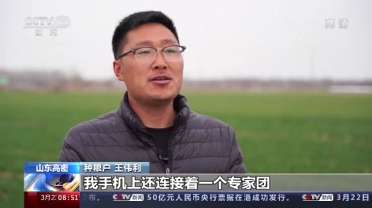 山東高密市種糧戶 王偉利:現(xiàn)在不是我一個(gè)人在種地,我手機(jī)上還連接著一個(gè)專家團(tuán)。根據(jù)他們的指導(dǎo),在冷空氣來(lái)臨之前,我早就給小麥澆上了水,土地沒(méi)有裂縫,冷空氣就進(jìn)不去。