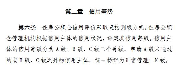 征求意見稿提出,住房公積金管理機(jī)構(gòu)根據(jù)信用主體的信用狀況,評定其信用等級。信用主體的信用等級分為A級、B級、C級三個等級。申請A級未通過的或B級、C級之外的信用主體,統(tǒng)一標(biāo)記為正常管理:N級。住房公積金管理機(jī)構(gòu)對信用等級實施動態(tài)管理,有效期為5年。(完)