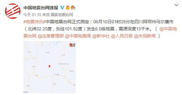 據(jù)國家地震臺網(wǎng)官方微博消息,四川阿壩州今晨發(fā)生多次地震,其中01時28分發(fā)生6.0級地震,震源深度13千米。另據(jù)央視新聞客戶端消息,國務院抗震救災指揮部辦公室、應急管理部已啟動國家地震應急四級響應。應急管理部連夜派出工作組赴四川指導協(xié)助地方開展抗震救災工作。四川省緊急啟動地質(zhì)災害三級應急響應,目前暫未收到震區(qū)及周邊區(qū)域因次生地質(zhì)災害造成人員傷亡的報告。