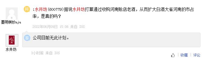水井坊:公司暫無(wú)收購(gòu)河南賒店老酒計(jì)劃