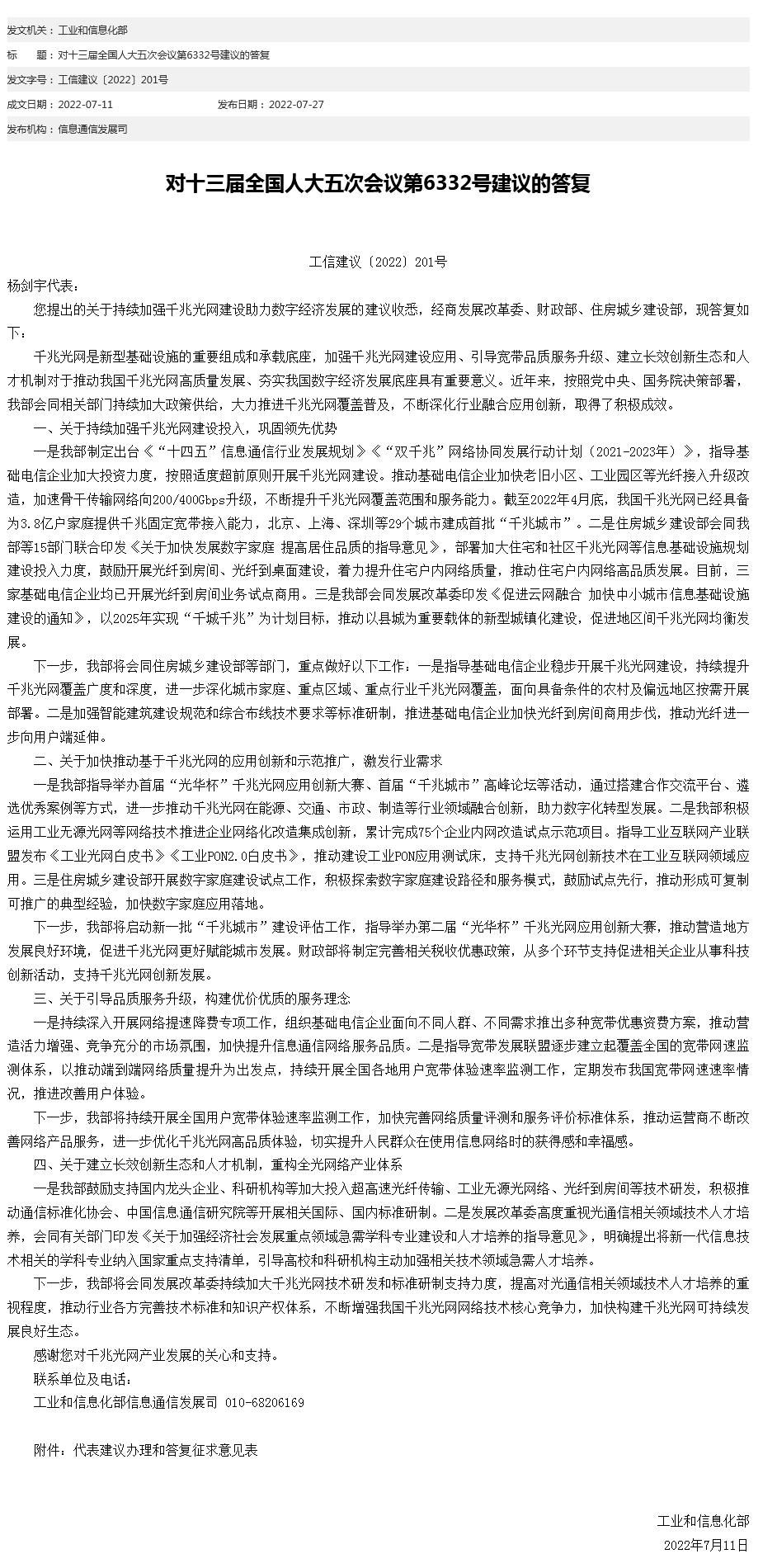 中新網(wǎng)7月27日電 工信部網(wǎng)站27日發(fā)布對(duì)十三屆全國(guó)人大五次會(huì)議第6332號(hào)建議的答復(fù)。工信部表示,將指導(dǎo)基礎(chǔ)電信企業(yè)穩(wěn)步開展千兆光網(wǎng)建設(shè),持續(xù)提升千兆光網(wǎng)覆蓋廣度和深度,進(jìn)一步深化城市家庭、重點(diǎn)區(qū)域、重點(diǎn)行業(yè)千兆光網(wǎng)覆蓋,面向具備條件的農(nóng)村及偏遠(yuǎn)地區(qū)按需開展部署。加強(qiáng)智能建筑建設(shè)規(guī)范和綜合布線技術(shù)要求等標(biāo)準(zhǔn)研制,推進(jìn)基礎(chǔ)電信企業(yè)加快光纖到房間商用步伐,推動(dòng)光纖進(jìn)一步向用戶端延伸。(中新財(cái)經(jīng))