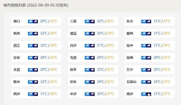 海南各城市預報。(來源:中國天氣網(wǎng))