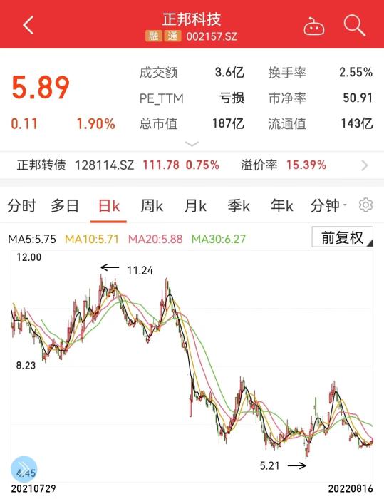 正邦科技股價(jià)走勢(shì)圖。