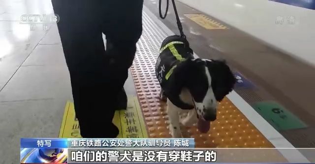 重慶鐵路公安處警犬隊馴導(dǎo)員 陳城:咱們警犬它散熱的方式就是通過舌頭,但是它工作的時候又要閉著嘴,用鼻子來呼吸、工作。天氣又太熱,它自身也非常難受,其實它內(nèi)心是非常煎熬的,但是咱們的警犬都非常棒,執(zhí)行命令也非常強(qiáng)。