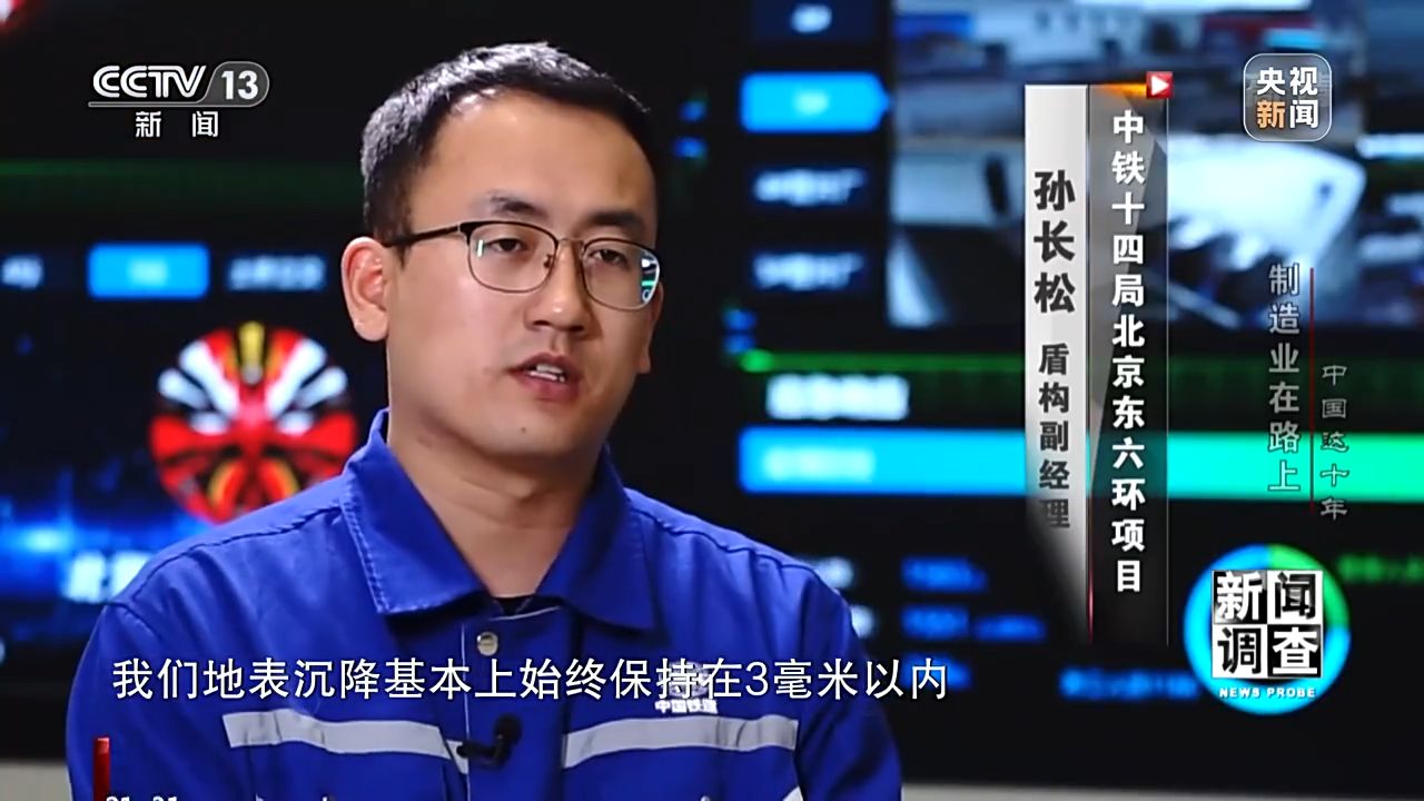 孫長松 中鐵十四局北京東六環(huán)項目盾構(gòu)副經(jīng)理:我們盾構(gòu)機(jī)開挖直徑是16米07,我們地表沉降基本上始終保持在3毫米以內(nèi)。