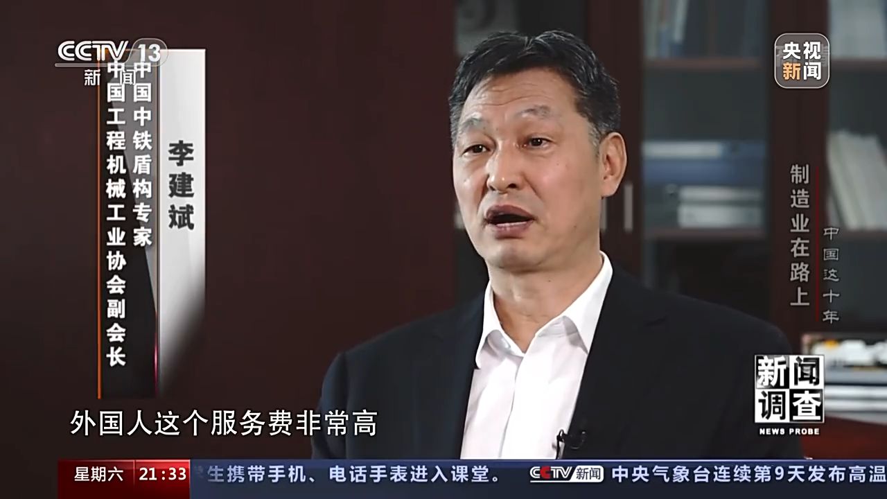 中國工程機(jī)械工業(yè)協(xié)會副會長 中國中鐵盾構(gòu)專家 李建斌:兩臺將近七個億,外國人這個服務(wù)費非常高,服務(wù)的時間非常短,每天就是八小時,過了人家不上班,我們是三班制,他是一班制,機(jī)器壞了我們就要等,這個是對我們刺激非常大,你不掌握技術(shù),所以說你處處受制于人。