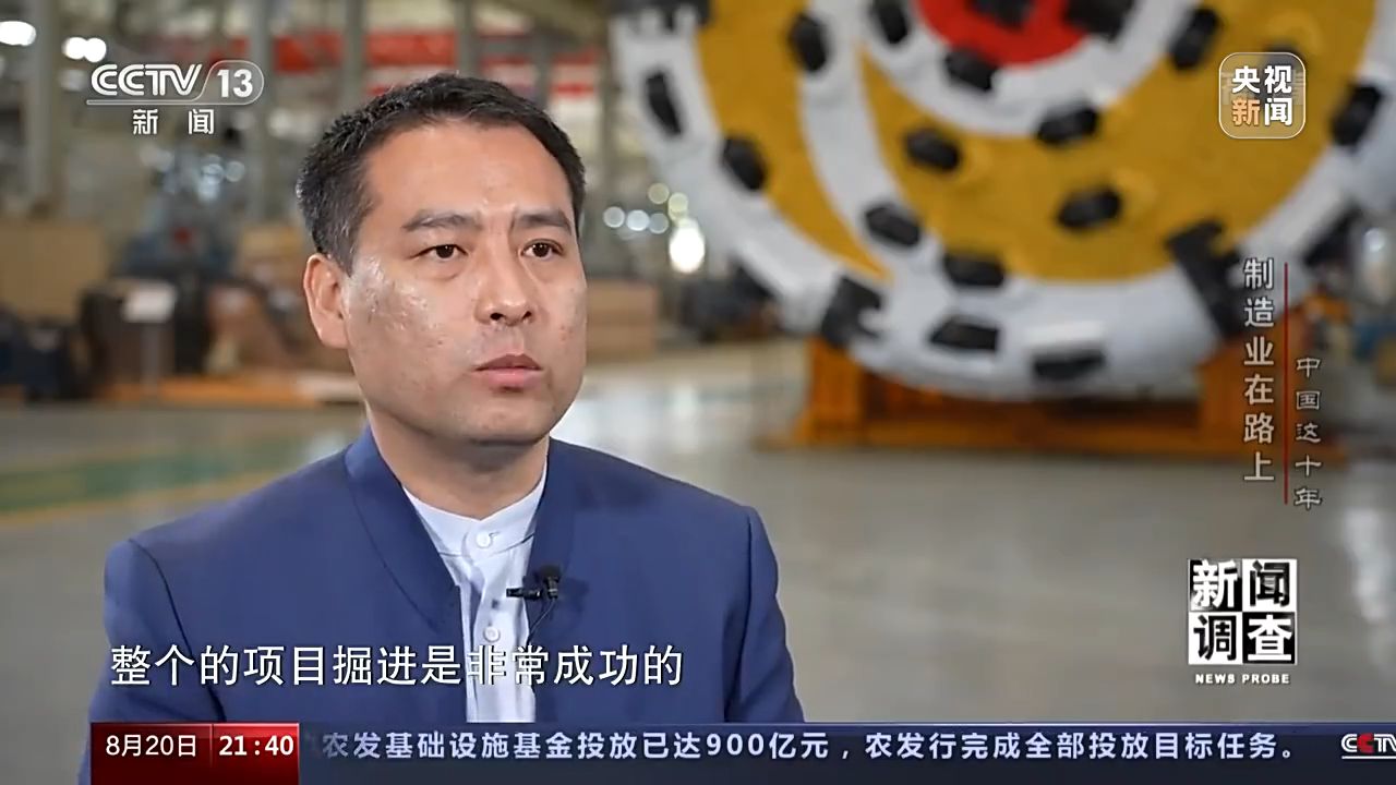 中鐵工程裝備集團(tuán)有限公司總經(jīng)理 張志國:(工程)當(dāng)中設(shè)備它通過了,一個大的球一樣的巖石,這個是當(dāng)時在地質(zhì)勘察階段是沒有發(fā)現(xiàn)的,但是就是因為盾構(gòu)機(jī)設(shè)計的它的性能是比較好的,整個的項目掘進(jìn)是非常成功的。