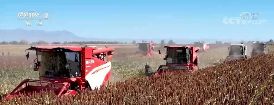 央視網(wǎng)消息:金秋時(shí)節(jié),甘肅省張掖市民樂(lè)縣的1.2萬(wàn)畝高粱已經(jīng)成熟了,紅色的高粱和穿梭的聯(lián)合收割機(jī)構(gòu)成一幅色彩艷麗的豐收畫(huà)卷。