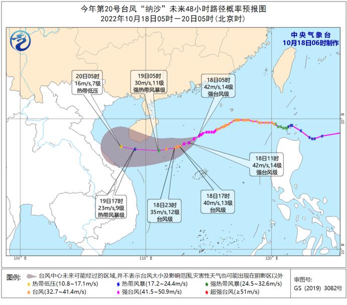 第20號(hào)臺(tái)風(fēng)“納沙”未來(lái)48小時(shí)路徑概率預(yù)報(bào)圖