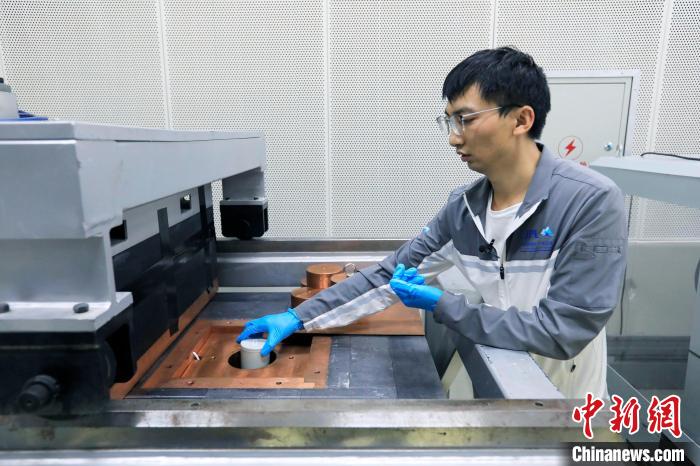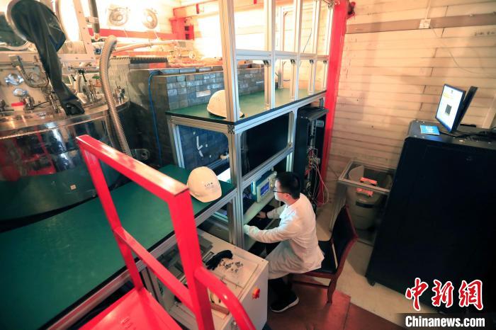 中國(guó)錦屏地下實(shí)驗(yàn)室內(nèi),科研助理景明坤正在對(duì)樣本進(jìn)行輻射檢測(cè)?!⊥趵?攝