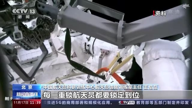 中國航天員科研訓練中心航天員選拔訓練室主任 王焰磊:我們在兩個艙間連接裝置這個作業(yè)點,本身設計了機械臂上航天員的不同的作業(yè)位置,它的復雜度以及操作的精細度是要更高的。舉一個例子,我們艙間連接裝置的其中一個固定點就有三重鎖,每一重鎖航天員都要鎖定到位,而且它是有相互關聯(lián)關系的,就要航天員的操作精細度要更高一些,而且是要保證我們連接裝置兩端連接緊固,保證以后我們在航天員艙外自主轉移的過程中路徑是一個可靠的路徑。(央視新聞客戶端)