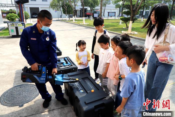 小朋友們親身體驗(yàn)滅火裝備器材。 蔡增欣 攝