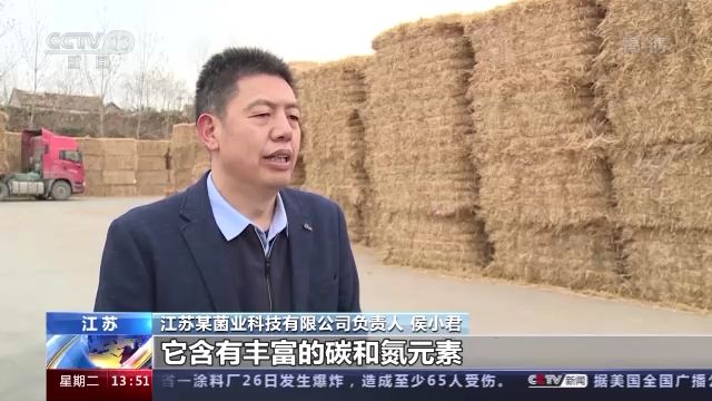 江蘇某菌業(yè)科技有限公司負(fù)責(zé)人 侯小君:麥秸稈是我們種植雙孢菇的基本原料,它含有豐富的碳和氮元素,我們把它和雞糞混合攪拌之后,培養(yǎng)出我們種植雙孢菇的基料。我們現(xiàn)在年產(chǎn)雙孢菇大概4萬噸,一年消耗秸稈用料5.7萬噸左右。