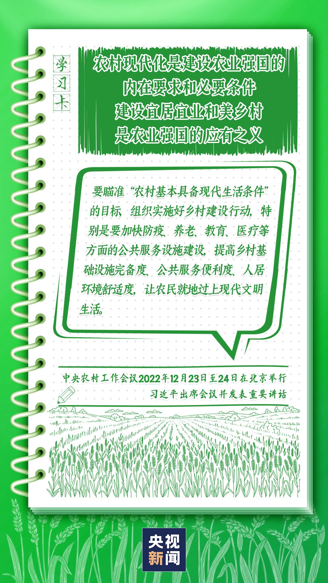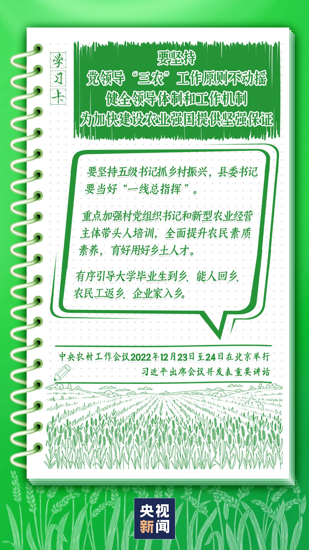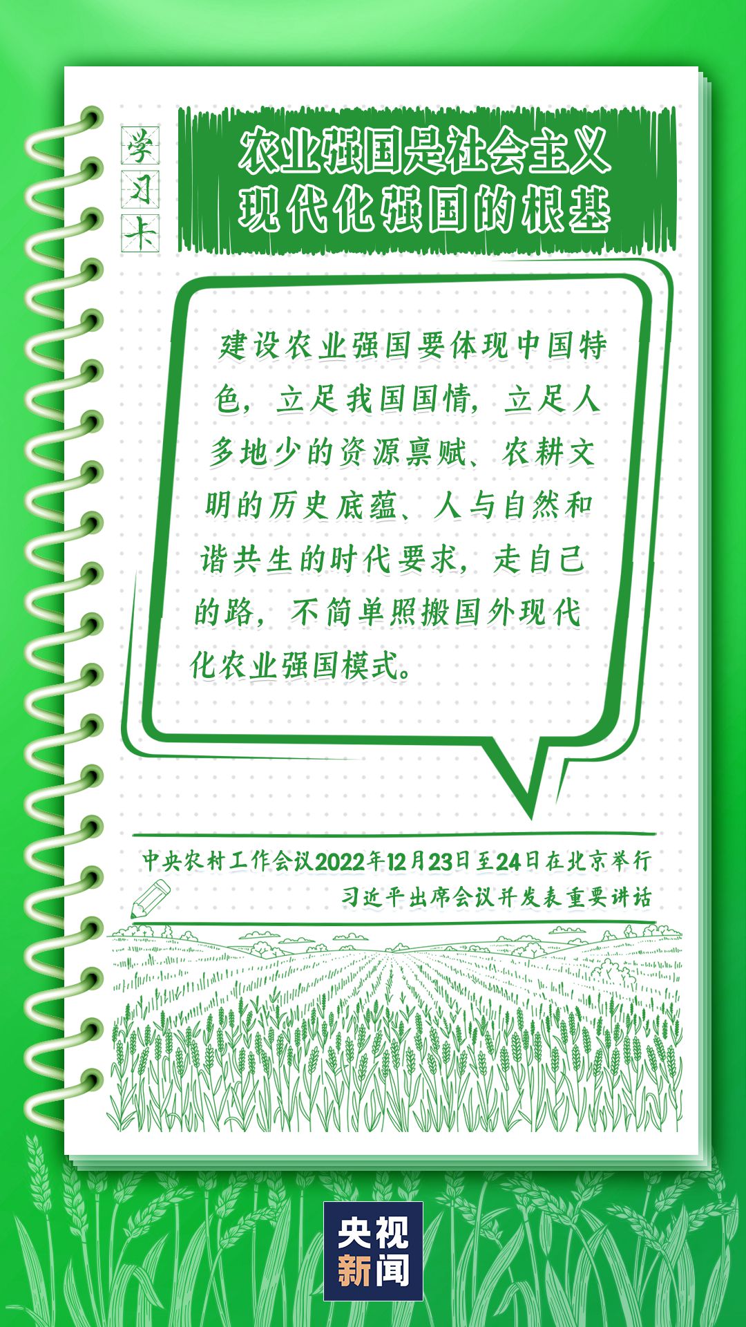 中央農(nóng)村工作會議12月23日至24日在北京舉行。習(xí)近平總書記出席會議并發(fā)表重要講話強調(diào),錨定建設(shè)農(nóng)業(yè)強國目標,切實抓好農(nóng)業(yè)農(nóng)村工作。如何建設(shè)農(nóng)業(yè)強國?總書記給出了“路線圖”,一起學(xué)習(xí)↓