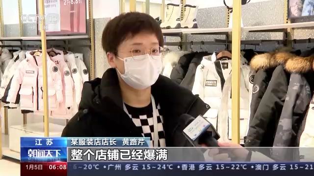 同樣,江蘇多地的商圈客流量也在不斷上漲,在江蘇蘇州工業(yè)園區(qū),前來采購新裝的消費者,手里拎著大大小小的購物袋。由于客流量較大,一些商店采取了排隊限流措施。在蘇州市觀前街的各大商場里,商家推出了優(yōu)惠促銷活動,冬衣、取暖器等成為熱銷品。