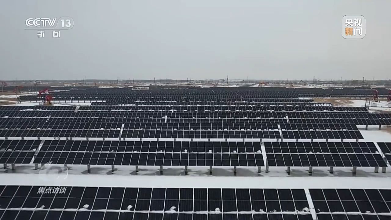 可是資源總有耗盡的那一天,該怎么辦呢?寒潮持續(xù)影響著松遼平原,記者來到大慶油田的第三天,氣溫已經(jīng)降到零下21℃,還伴隨著5級(jí)風(fēng)。大慶是一個(gè)百湖之城,有很多的泡澤,記者看到,在封凍的水泡子上,已經(jīng)建設(shè)了一批水面光伏。