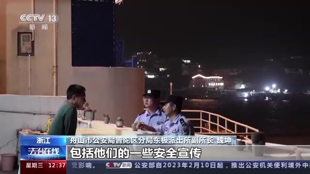 舟山市公安局普陀區(qū)分局東極派出所副所長 魏坤:可能你連吃飯的時間都要壓縮,第一個日常巡邏是不間斷的,第二個就是平常的民宿檢查,對在島的游客,包括他們的一些安全宣傳,我們也要做到位。