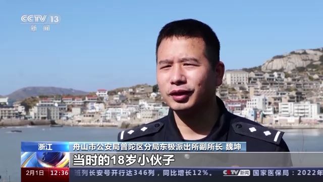 舟山市公安局普陀區(qū)分局東極派出所副所長 魏坤:當(dāng)時的18歲小伙子,朝著安徽的方向看看家,想想家,海的話就是一望無際,感覺(自己)好像一葉扁舟,看也看不到遠(yuǎn)方。